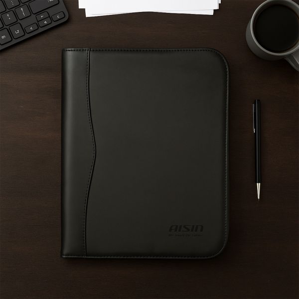 The portfolio includes a handy compartment plus a zipper pocket for storing documents.
