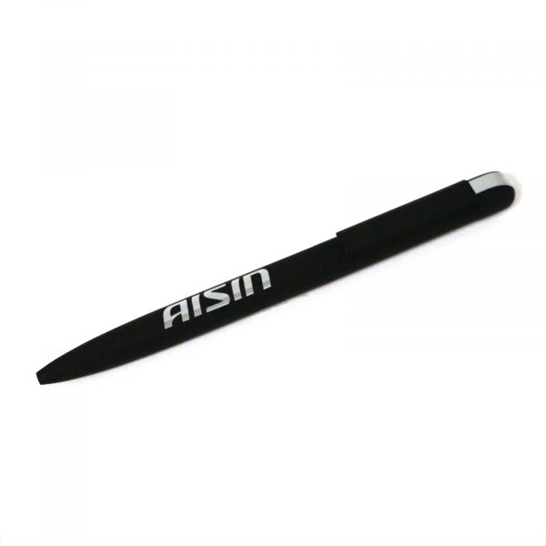 Twist metal pen with black rubber finish. With engraving of Aisin logo. Packed in branded box.
